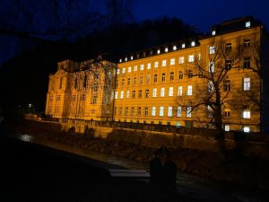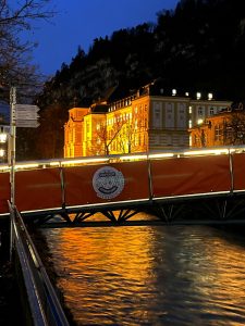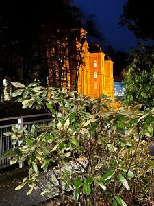Auch immer mehr Gebäude werden in den 16 Tagen gegen Gewalt orangefarben angestrahlt, wie zum Beispiel die Stella Vorarlberg, Privathochschule für Musik und die Villa Falkenhorst, wo unsere weihnachtlichen Benefizkonzerte stattfinden.